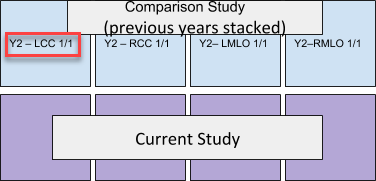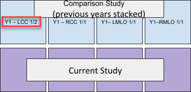 - If a prior study does not contain a corresponding series (only RCC and RMLO (and no LCC or LMLO)), then scrolling will display a blank in the viewport of the missing series.